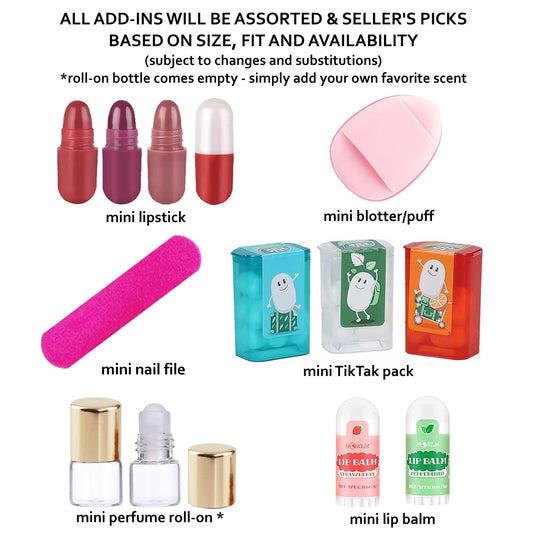 Mini-Mini Purse Bag Charm / Favor with Mini Beauty Essentials